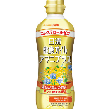 【オメガ3が豊富なアマニ油30%配合「日清健康オイル アマニプラス」】 血圧が高めの方におすすめの機能性表示食品。