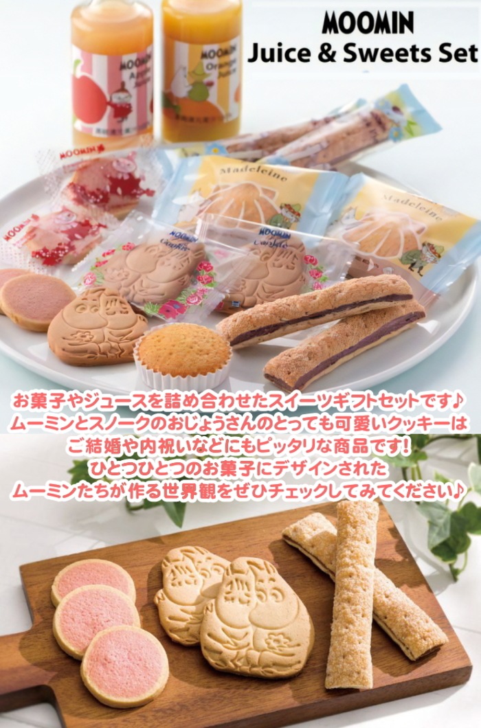 世界中で愛されて続けている大人気キャラクターたちが作るかわいらしいムーミンの世界を、お菓子を詰め合わせたスイーツギフトセットと一緒にお届けします。
