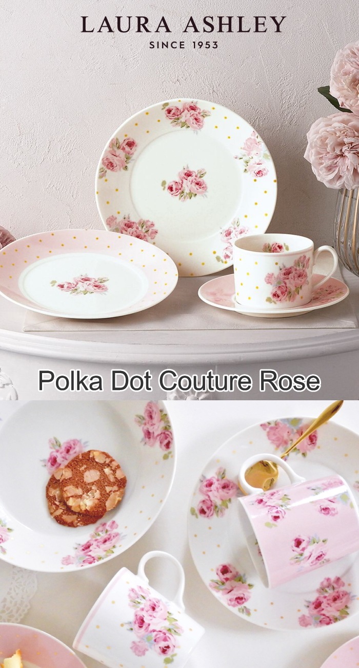 ローラアシュレイの中でも愛され続けている人気プリント、クチュールローズに水玉をあしらった