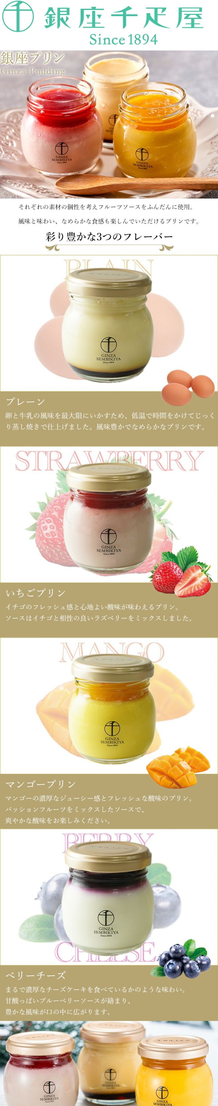商品:プリン(プレーン・いちご・マンゴー)(各約95g)×各2