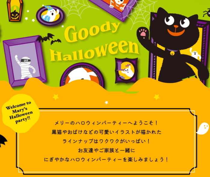 大きな黒猫に驚いているおばけがデザインされたお菓子缶。