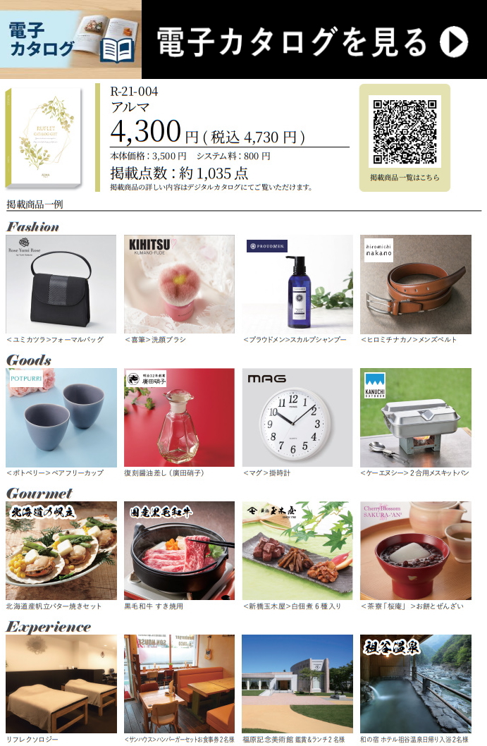 〇掲載商品数等:掲載商品数約1,035点 パッケージサイズ:19×26×2.3cmマイプレシャス【カタログギフト】RUFLET(ルフレ)アルマ 4300円コース 送料無料 当日発送可能商品です